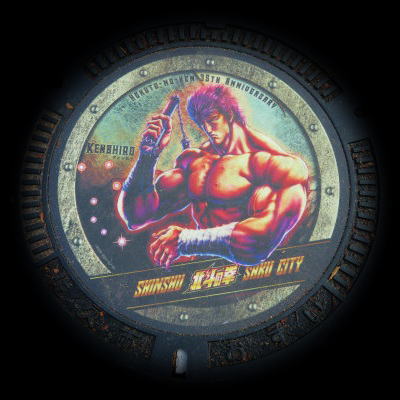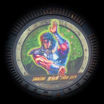 佐久市は「北斗の拳」の原作者である武論尊先生の出身地で、佐久平駅前には「北斗の拳」のキャラクターを描いたマンホールのふたが設置されています。これは先生の協力を得て、佐久市が設置したものです。
