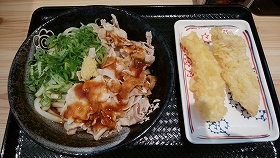 店外の『肉で麺を喰らう 肉肉フェア』のポスターに誘われ「ねぎ豚生姜うどん」ってのをを注文してみました。