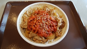 今日は「キムチ豚丼」をいただきました。キムチも結構な量で美味しいですね。 |
