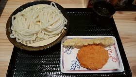 長野市 「はなまる(長野大豆島店)」 ざる(中)、いか天、コロッケ |