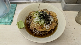 暑いので冷たいそばにしましたが、ここのかき揚げは独特ですね。天ぷらというよりお菓子、どん兵衛のかき揚げのようです。食感が面白くて、嫌いじゃないですよ。 |
