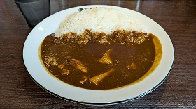 出てきた「牛カレー」を一口食べて思ったのは「辛くないぞ!」。 |