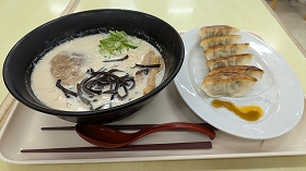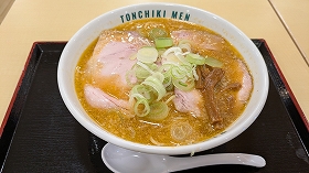 | お昼は「とんちき麺」。今日は少しスープの味が薄かったような気がします。作る人が頻繁に変わるのかもしれませんね。 |