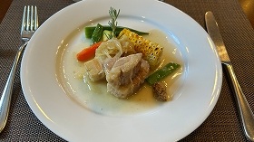 写真は肉料理を選択した場合の「信州ポークのブレゼ」です。「ブレゼ」って何? |