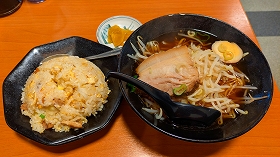 さすがは大盛りのお店、ラーメンは大盛り、半チャーハンはほぼ一人前でした。