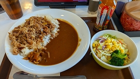 長野市 「すき家(北尾張部店)」 肉2倍牛カレー(並)、サラダセット |