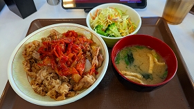 お昼は散歩がてら歩いて「すき家」へ。幸運にも厚くて大きな牛肉が入っていました。 |