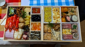 今年のおせちは岐阜県の「ちこり村」に注文しました。2万円弱の値段でしたが、2段で和風と洋風に分かれているかなり豪華なおせちです。