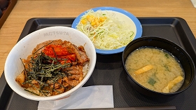 長野市 「松屋(長野柳原店)」 キムカル丼(並)、生野菜 |