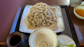 仕方なく群馬の森の向かいにあるそば屋「彼方此方」に行きました。群馬のそば屋なので期待していなかったのですが、期待を裏切ることはありませんでした。でも、店員のおばさんの元気な応対だけは満点でした。 |