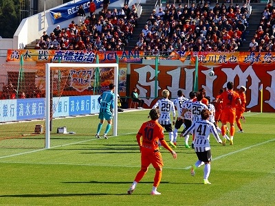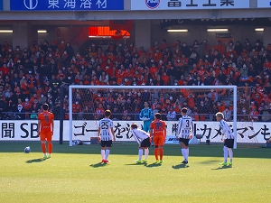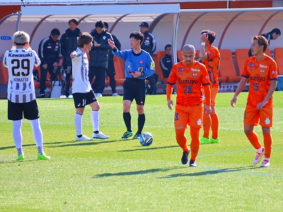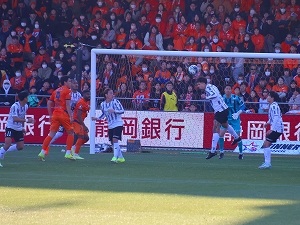 | 数的優位に立ち、攻め続ける清水 しかし 0 - 0 で前半終了 |